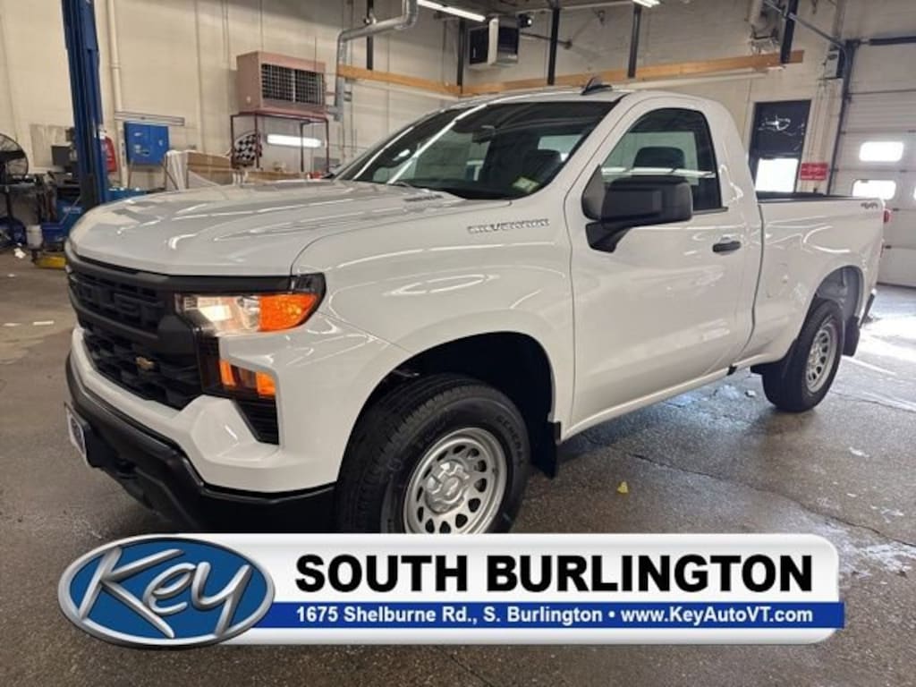 Key Chevrolet Burlington is proud to present you with another True Market Priced Vehicle. This 2026 Chevrolet Silverado 1500 WT is loaded with the following Factory Options: 8-Speed Automatic, 4WD, and Jet Black Vinyl Preferred Equipment Group 1WT (3.5 Monochromatic Display Driver Info Center, 4-Way Manual Driver Seat Adjuster, 40/20/40 Front Split Bench Seat, Black (Semi-Gloss) Front Bumper, Black (Semi-Gloss) Rear Bumper, Bluetooth® For Phone, Electronic Cruise Control, Front Frame-Mounted Black Recovery Hooks, HD Rear Vision Camera, Heated Power-Adjustable Outside Mirrors, Inside Rearview Mirror with Tilt, Locking Tailgate, Manual Tailgate Function with No EZ Lift, Manual Tilt Wheel Steering Column, OnStar Services Capable, Power Front Windows with Driver Express Up/Down, Power Front Windows with Passenger Express Down, Remote Keyless Entry, Rubberized-Vinyl Floor Covering, SiriusXM Delete, Solar Absorbing Tinted Glass, Standard Tailgate, Teen Driver, Tire Pressure Monitoring System, Vinyl Seat Trim, Wheels: 17 x 8 Ultra Silver Painted Steel, and Wi-Fi Hot Spot Capable), Standard Suspension Package, 8-Speed Automatic, 4WD, Jet Black Vinyl, 2 Speakers, 2-Speaker Audio System, 220 Amp Alternator, 3.42 Rear Axle Ratio, 4-Wheel Disc Brakes, ABS brakes, Air Conditioning, AM/FM radio, Apple CarPlay/Android Auto, Auto High-beam Headlights, Automatic Emergency Braking, Brake assist, Compass, Delay-off headlights, Driver door bin, Dual front impact airbags, Dual front side impact airbags, Electronic Stability Control, Emergency communication system: OnStar, Following Distance Indicator, Forward Collision Alert, Front anti-roll bar, Front Center Armrest w/Storage, Front License Plate Kit, Front Pedestrian Braking, Front reading lights, Front wheel independent suspension, Fully automatic headlights, Heated door mirrors, Illuminated entry, IntelliBeam Automatic High Beam on/Off, Lane Keep Assist with Lane Departure Warning, Low tire pressure warning, Occupant sensing airbag, Outside temperature display, Overhead airbag, Overhead console, Panic alarm, Passenger door bin, Passenger vanity mirror, Power door mirrors, Power steering, Power windows, Premium audio system: Chevrolet Infotainment 3, Radio data system, Radio: Chevrolet Infotainment 3 System, Rear reading lights, Rear step bumper, Remote keyless entry, Speed control, Speed-sensing steering, Tachometer, Tilt steering wheel, Traction control, Trip computer, Variably intermittent wipers, and Voltmeter!!
