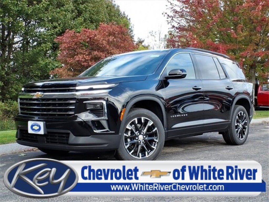 AWD. Mosaic Black Metallic 2026 Chevrolet Traverse LT 2LT AWD 8-Speed Automatic 2.5L DOHC At Key Chevrolet of White River, our team is focused on helping you find the vehicle you want without any hassle or pressure. The sales process will be straightforward and the information provided will be accurate and shared with clarity and candor. At Key Chevrolet of White River, we're committed to delivering you a purchase experience that exceeds your every expectation.Recent Arrival!Key Chevrolet of White River is proud to present you with another True Market Priced Vehicle. This 2026 Chevrolet Traverse LT 2LT is loaded with the following Factory Options: AWD Floor Liner Package (LPO) (1st & 2nd Row All-Weather Floor Liners (LPO), 3rd Row All-Weather Floor Liner (LPO), and Integrated Cargo Liner (LPO)), Preferred Equipment Group 2LT, Sun & Wheel Package (Power Dual Glass Panoramic Sliding Sunroof and Wheels: 20 Carbon Flash Metallic Aluminum), AWD, 3rd row seats: split-bench, 4-Way Manual Front Passenger Seat Adjuster, 4-Wheel Disc Brakes, 6 Speakers, 6-Speaker Audio System Feature, 8-Way Power Driver Seat Adjuster, ABS brakes, Air Conditioning, Alloy wheels, AM/FM radio: SiriusXM with 360L, Apple CarPlay/Android Auto, Auto High-beam Headlights, Automatic temperature control, Brake assist, Bumpers: body-color, Child-Seat-Sensing Airbag, Compass, Delay-off headlights, Driver door bin, Driver vanity mirror, Dual front impact airbags, Dual front side impact airbags, Electronic Stability Control, Emergency communication system: OnStar, Four wheel independent suspension, Front anti-roll bar, Front Bucket Seats, Front Center Armrest, Front dual zone A/C, Front reading lights, Fully automatic headlights, Heated door mirrors, Heated Driver & Front Passenger Seats, Heated front seats, Heated steering wheel, Illuminated entry, Low tire pressure warning, Navigation System, Occupant sensing airbag, Outside temperature display, Overhead airbag, Overhead console, Panic alarm, Passenger door bin, Passenger vanity mirror, Power door mirrors, Power driver seat, Power Liftgate, Power steering, Power windows, Premium Cloth Seat Trim, Radio data system, Radio: Audio System w/17.7 Diagonal Display, Rear air conditioning, Rear anti-roll bar, Rear reading lights, Rear window defroster, Rear window wiper, Remote keyless entry, Security system, SiriusXM w/360L Trial Subscription, Speed control, Speed-sensing steering, Spoiler, Steering wheel mounted audio controls, Tachometer, Telescoping steering wheel, Tilt steering wheel, Traction control, Trip computer, Turn signal indicator mirrors, Variably intermittent wipers, Voltmeter, and Wheels: 18 Grazen Metallic Machined-Face Aluminum!!