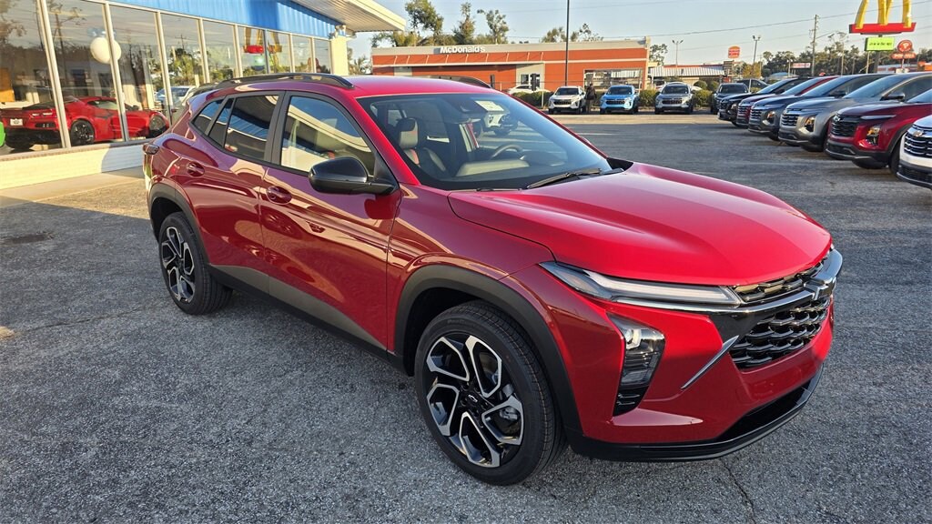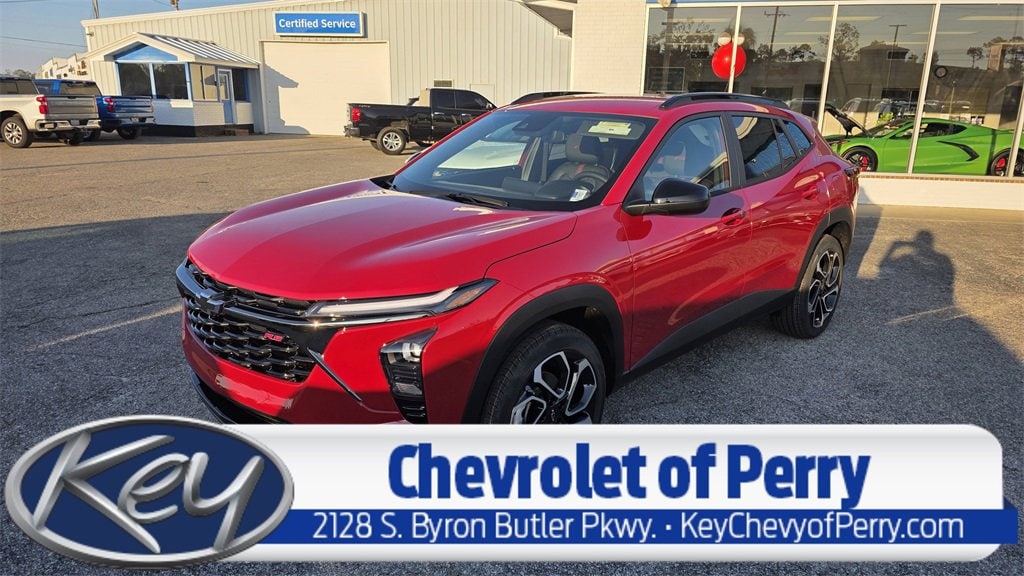 Apex Red 2026 Chevrolet Trax 2RS FWD 6-Speed Automatic ECOTEC 1.2L TurboKey Chevrolet of Perry is proud to present you with another True Market Priced Vehicle. This 2026 Chevrolet Trax 2RS is loaded with the following Factory Options: License Plate Front Mounting Package, Preferred Equipment Group 2RS, 2-Way Adjustable Front Head Restraints, 2-Way Power Driver Lumbar Seat Adjuster, 3.50 Final Drive Axle Ratio, 4-Way Manual Front Passenger Seat Adjuster, 4-Wheel Disc Brakes, 6 Speakers, 6-Speaker Audio System Feature, 8-Way Power Driver Seat Adjuster, ABS brakes, Air Conditioning, Alloy wheels, AM/FM radio: SiriusXM, Auto High-beam Headlights, Automatic temperature control, Brake assist, Bumpers: body-color, Compass, Delay-off headlights, Driver door bin, Driver vanity mirror, Dual front impact airbags, Dual front side impact airbags, Electronic Stability Control, Emergency communication system: OnStar One Essentials, Evotex Seat Trim, Exterior Parking Camera Rear, Front and Rear Jet Black All-Weather Floor Liners, Front anti-roll bar, Front Bucket Seats, Front Center Armrest, Front reading lights, Front wheel independent suspension, Fully automatic headlights, Heated door mirrors, Heated Driver and Front Passenger Seats, Heated front seats, Heated steering wheel, Illuminated entry, Leather steering wheel, Low tire pressure warning, Occupant sensing airbag, Outside temperature display, Overhead airbag, Overhead console, Panic alarm, Passenger door bin, Passenger vanity mirror, Power door mirrors, Power driver seat, Power steering, Power windows, Premium audio system: Chevrolet Infotainment 3, Radio data system, Radio: AM/FM Stereo Audio System, Rear window defroster, Rear window wiper, Remote keyless entry, Security system, SiriusXM Trial Subscription, Speed control, Split folding rear seat, Spoiler, Sport steering wheel, Steering wheel mounted audio controls, Tachometer, Telescoping steering wheel, Tilt steering wheel, Traction control, Trip computer, Variably intermittent wipers, Wheels: 19 Black-Painted Machined Aluminum, and Wireless Apple CarPlay/Wireless Android Auto!! Recent Arrival! 28/32 City/Highway MPG