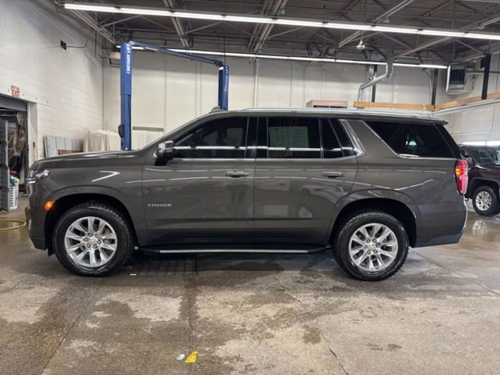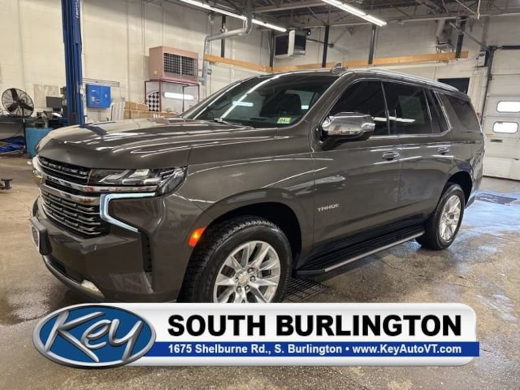 4WD, Jet Black Leather. Clean CARFAX. 2021 Chevrolet Tahoe Premier Graywood Metallic Premier 4WD 10-Speed Automatic with Overdrive EcoTec3 5.3L V8The Best Service, The Best Selection, The Best Price...The Difference is Key!Internet advertised price includes a $500 Trade-in and $500 dealer financing incentive. Customer must trade in a vehicle to qualify for $500 trade-in incentive. Customer must use dealer supplied financing to qualify for $500 finance incentive.Awards:* JD Power Automotive Performance, Execution and Layout (APEAL) Study * ALG Residual ValueKey Chevrolet Burlington is proud to present you with another True Market Priced Pre-Owned Vehicle. Transparent Pricing Of $ !! This 2021 Chevrolet Tahoe Premier is loaded with the following Factory Options: 4WD and Jet Black Leather License Plate Front Mounting Package, Preferred Equipment Group 1LZ (1st & 2nd Row Color-Keyed Carpeted Floor Mats, 2 USB Data Ports, 2-Speed Active Electronic AutoTrac Transfer Case, 3rd Row 60/40 Power-Folding Split-Bench Seat, Auto-Dimming Inside Rear-View Mirror, Automatic Heated Steering Wheel, Bright Front & Rear Door Sill Plates, Chrome Door Handles w/Body-Color Strip, Chrome Mirror Caps, Color-Keyed Carpeting Floor Covering, Driver & Front Outboard Passenger Airbags, Dual Exhaust System, Enhanced Driver Information Center, Floor Console w/Storage Area, Front & Rear Park Assist, Hands-Free Rear Power Programmable Liftgate, HD Radio, Heated 2nd Row Outboard Seats, Hill Descent Control, Infotainment Display, Lane Change Alert w/Side Blind Zone Alert, Lane Keep Assist w/Lane Departure Warning, Leather-Wrapped Steering Wheel, LED Daytime Running Lamps, Memory Settings, Outside Heated Power-Adjustable Mirrors, Power Release 2nd Row Bucket Seats, Power Tilt & Telescopic Steering Column, Rear Cross Traffic Alert, Remote Start, Safety Alert Seat, SiriusXM NavTraffic, SiriusXM Radio w/360L, and Universal Home Remote), 4WD, Jet Black Leather, 10 Speakers, 12-Way Power Driver & Passenger Seat Adjusters, 20 x 9 Polished Aluminum Wheels, 3.23 Rear Axle Ratio, 3rd row seats: split-bench, 4-Wheel Disc Brakes, ABS brakes, Adaptive suspension, Air Conditioning, Alloy wheels, AM/FM radio: SiriusXM with 360L, Apple CarPlay/Android Auto, Auto High-beam Headlights, Auto-dimming door mirrors, Auto-dimming Rear-View mirror, Auto-leveling suspension, Automatic temperature control, Bose 10-Speaker Centerpoint Surround Audio Sys Ft, Brake assist, Bumpers: body-color, Compass, Delay-off headlights, Driver door bin, Driver vanity mirror, Dual front impact airbags, Dual front side impact airbags, Electronic Stability Control, Emergency communication system: OnStar and Chevrolet connected services capable, Four wheel independent suspension, Front anti-roll bar, Front Bucket Seats, Front Center Armrest, Front dual zone A/C, Front High-Back Reclining Bucket Seats, Front reading lights, Fully automatic headlights, Garage door transmitter, Heated & Ventilated Driver & Front Passenger Seats, Heated door mirrors, Heated Driver & Front Passenger Seats, Heated front seats, Heated rear seats, Heated steering wheel, Illuminated entry, Leather steering wheel, Low tire pressure warning, Magnetic Ride Control Suspension, Memory seat, Navigation System, Occupant sensing airbag, Outside temperature display, Overhead airbag, Overhead console, Panic alarm, Passenger door bin, Passenger vanity mirror, Perforated Leather Seat Trim, Power door mirrors, Power driver seat, Power Liftgate, Power passenger seat, Power steering, Power windows, Premium audio system: Chevrolet Infotainment 3, Radio: Chevrolet Infotainment 3 Premium System, Rain sensing wipers, Rear air conditioning, Rear anti-roll bar, Rear reading lights, Rear window defroster, Rear window wiper, Remote keyless entry, Roof rack: rails only, Security system, Speed control, Speed-sensing steering, Split folding rear seat, Spoiler, Steering wheel memory, Steering wheel mounted audio controls,