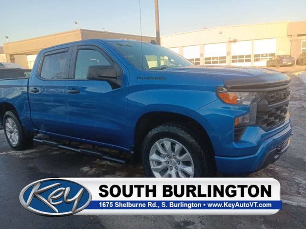 Key Chevrolet Burlington is proud to present you with another True Market Priced Pre-Owned Vehicle. Transparent Pricing Of $ 31999 !! This 2022 Chevrolet Silverado 1500 Custom is loaded with the following Factory Options: 8-Speed Automatic, 4WD, and Black Cloth Custom Convenience Package (Electric Rear-Window Defogger, EZ Lift Power Lock & Release Tailgate, LED Cargo Area Lighting, and Remote Vehicle Starter System), Custom Value Package, Dark Essentials Package (LPO) (Black Name Plates (LPO)), High Capacity Suspension Package, Preferred Equipment Group 1CX (10-Way Power Driver Seat w/Lumbar, 120-Volt Bed Mounted Power Outlet, 120-Volt Instrument Panel Power Outlet, 3.5" Monochromatic Display Driver Info Center, Bluetooth® For Phone, Chevrolet Connected Access Capable, Color-Keyed Carpeting Floor Covering, Compass, Deep-Tinted Glass, Dual Rear USB Ports (Charge Only), Electrical Steering Column Lock, Electronic Cruise Control, Front Frame-Mounted Black Recovery Hooks, Front Rubberized Vinyl Floor Mats, HD Rear Vision Camera, Manual Tilt Wheel Steering Column, OnStar & Chevrolet Connected Services Capable, Power Front Windows w/Driver Express Up/Down, Power Front Windows w/Passenger Express Down, Power Rear Windows w/Express Down, Rear 60/40 Folding Bench Seat (Folds Up), Rear Rubberized-Vinyl Floor Mats, Remote Keyless Entry, SiriusXM Radio, Standard Tailgate, Theft Deterrent System (Unauthorized Entry), Wi-Fi Hot Spot Capable, and Wireless Phone Projection), Trailering Package (Hitch Guidance), 8-Speed Automatic, 4WD, Black Cloth, 3.42 Rear Axle Ratio, 4-Wheel Disc Brakes, 40/20/40 Front Split-Bench Seat, 6 Speakers, 6-Speaker Audio System, ABS brakes, Air Conditioning, Alloy wheels, AM/FM radio: SiriusXM, Apple CarPlay/Android Auto, Auto High-beam Headlights, Auto-Locking Rear Differential, Automatic Emergency Braking, Black Chrome Exhaust Tip (LPO), Black Tailgate CHEVROLET Lettering (LPO), Brake assist, Bumpers: body-color, Chevytec Spray-On Black Bedliner, Cloth Seat Trim, Delay-off headlights, Driver door bin, Driver vanity mirror, Dual front impact airbags, Dual front side impact airbags, Electronic Stability Control, Following Distance Indicator, Forward Collision Alert, Front anti-roll bar, Front Black Bowtie Emblem (LPO), Front Center Armrest w/Storage, Front Pedestrian Braking, Front reading lights, Front wheel independent suspension, Fully automatic headlights, Heated door mirrors, Illuminated entry, IntelliBeam Automatic High Beam On/Off, Lane Keep Assist w/Lane Departure Warning, Low tire pressure warning, Not Equipped w/Rear USB Ports, Not Equipped w/Steering Column Lock, Occupant sensing airbag, Outside temperature display, Overhead airbag, Overhead console, Panic alarm, Passenger door bin, Passenger vanity mirror, Power door mirrors, Power driver seat, Power steering, Power windows, Premium audio system: Chevrolet Infotainment 3, Radio data system, Radio: Chevrolet Infotainment 3 System, Rear reading lights, Rear step bumper, Rear window defroster, Remote keyless entry, Security system, Speed control, Speed-sensing steering, Split folding rear seat, Tachometer, Tilt steering wheel, Traction control, Trip computer, Variably intermittent wipers, Voltmeter, and Wheels: 20" x 9" Bright Silver Painted Aluminum!!