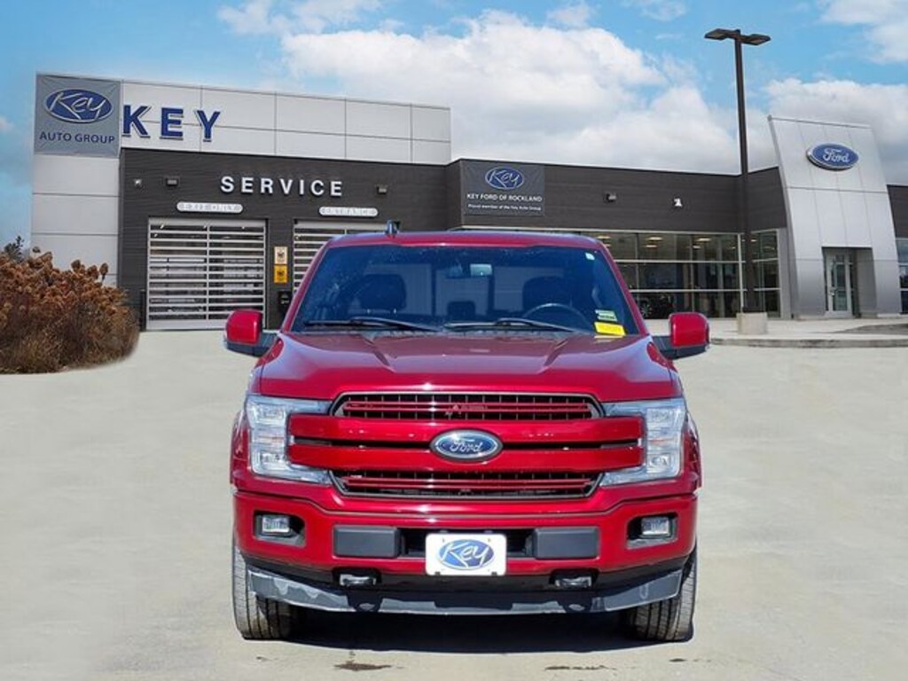 Key Ford of Rockland is proud to present you with another True Market Priced Pre-Owned Vehicle. Transparent Pricing Of $ 32027 !! This 2020 Ford F-150 Lariat is loaded with the following Factory Options: 4WD Equipment Group 502A Luxury (110V/400W Outlet, 2nd Row Heated Seats, B&O Sound System by Bang & Olufsen, HEATED Steering Wheel, Leather-Trimmed Bucket Seats, LED Sideview Mirror Spotlights, Power Tilt/Telescoping Steering Column w/Memory, Quad Beam LED Headlamps & LED Taillamps/Fog Lamps, Rain-Sensing Wipers, Remote Start System w/Remote Tailgate Release, Reverse Sensing System, Universal Garage Door Opener, and Windshield Wiper De-Icer), GVWR: 6,600 lbs Payload Package, Lariat Bed Utility Package, Lariat Chrome Appearance Package (Chrome 2-Bar Grille w/4 Minor Bars, Chrome Angular Step Bars, and Chrome Skull Caps on Exterior Mirrors), Lariat Sport Appearance Package (2-Bar Body-Color Grille w/4 Minor Bars and Accent-Color Angular Step Bars), Trailer Tow Package (Class IV Trailer Hitch Receiver and Pro Trailer Backup Assist), 4WD, 18" Machined-Aluminum Wheels, 3.55 Axle Ratio, 4-Wheel Disc Brakes, 7 Speakers, ABS brakes, Adjustable pedals, Air Conditioning, Alloy wheels, AM/FM radio: SiriusXM, Auto High-beam Headlights, Auto-dimming door mirrors, Auto-dimming Rear-View mirror, Automatic temperature control, Brake assist, Bumpers: chrome, Compass, Delay-off headlights, Driver door bin, Driver vanity mirror, Dual front impact airbags, Dual front side impact airbags, Electronic Stability Control, Emergency communication system: SYNC 3 911 Assist, Exterior Parking Camera Rear, Front anti-roll bar, Front Center Armrest w/Storage, Front dual zone A/C, Front fog lights, Front License Plate Bracket, Front reading lights, Front wheel independent suspension, Fully automatic headlights, Heated door mirrors, Heated front seats, Illuminated entry, Integrated Trailer Brake Controller, Leather-Trimmed 40/20/40 Front Seat, Low tire pressure warning, Memory seat, Occupant sensing airbag, Outside temperature display, Overhead airbag, Overhead console, Panic alarm, Passenger door bin, Passenger vanity mirror, Pedal memory, Power door mirrors, Power driver seat, Power Glass Sideview Mirr w/Body-Color Skull Caps, Power passenger seat, Power steering, Power windows, Radio data system, Radio: AM/FM Stereo w/6 Speakers, Rear reading lights, Rear seat center armrest, Rear step bumper, Rear window defroster, Remote keyless entry, Security system, SiriusXM Radio, Speed control, Speed-sensing steering, Split folding rear seat, Steering wheel mounted audio controls, SYNC 3, Tachometer, Tailgate Step w/Tailgate Lift Assist, Telescoping steering wheel, Tilt steering wheel, Tough Bed Spray-In Bedliner, Traction control, Tray Style Floor Liner, Trip computer, Turn signal indicator mirrors, Twin Panel MOONROOF, Variably intermittent wipers, Ventilated front seats, Voice-Activated Touchscreen Navigation, Voltmeter, and Wheels: 20" 6-Spoke Dark Alloy Painted!!