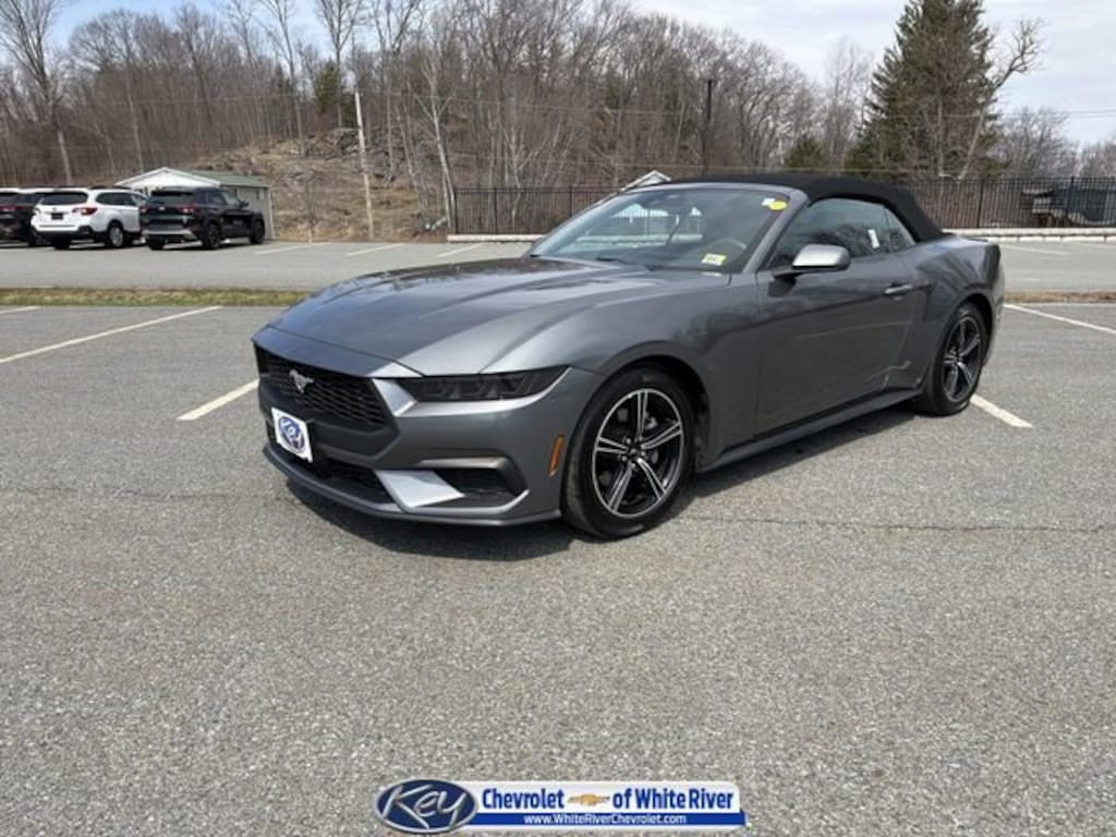 Key Chevrolet of White River is proud to present you with another True Market Priced Pre-Owned Vehicle. This 2025 Ford Mustang EcoBoost Premium is loaded with the following Factory Options: 4-Wheel Disc Brakes, 9 Speakers, ABS brakes, Air Conditioning, Alloy wheels, AM/FM radio: SiriusXM with 360L, AM/FM Stereo, Auto High-beam Headlights, Automatic temperature control, Brake assist, Bumpers: body-color, Compass, Convertible roof lining, Delay-off headlights, Driver door bin, Driver vanity mirror, Dual front impact airbags, Dual front side impact airbags, Electronic Stability Control, Emergency communication system: 911 Assist, Exterior Parking Camera Rear, Four wheel independent suspension, Front anti-roll bar, Front Bucket Seats, Front Center Armrest, Front dual zone A/C, Front reading lights, Fully automatic headlights, Glass rear window, Heated front seats, Illuminated entry, Internet access capable: FordPass Connect, Knee airbag, Leather Shift Knob, Low tire pressure warning, Occupant sensing airbag, Outside temperature display, Overhead console, Panic alarm, Passenger door bin, Passenger vanity mirror, Power convertible roof, Power door mirrors, Power driver seat, Power steering, Power windows, Radio data system, Rain sensing wipers, Rear anti-roll bar, Rear Parking Sensors, Rear window defroster, Remote keyless entry, Security system, Speed control, Speed-sensing steering, Speed-Sensitive Wipers, Sport steering wheel, Steering wheel mounted audio controls, SYNC 4, Tachometer, Telescoping steering wheel, Tilt steering wheel, Traction control, Trip computer, Variably intermittent wipers, Voltmeter, and Wheels: 18 x 8 Machined-Face Aluminum!!