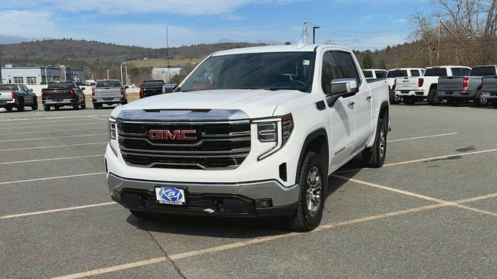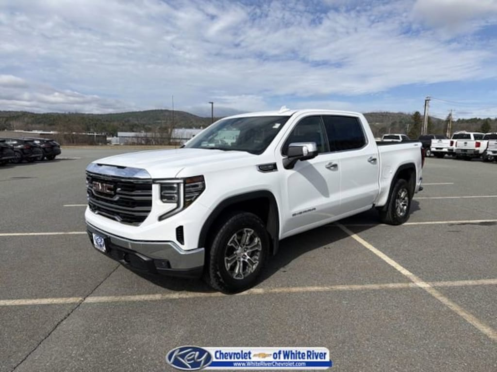Key Chevrolet of White River is proud to present you with another True Market Priced Pre-Owned Vehicle. This 2025 GMC Sierra 1500 SLT is loaded with the following Factory Options: 10-Speed Automatic, 4WD, and Black Leather Preferred Equipment Group 4SA (120-Volt Bed Mounted Power Outlet, 120-Volt Interior Power Outlet, 170 Amp Alternator, 2 Charge/Data USB Ports, 2 Type-C Charge-Only Rear USB Ports, 6-Speaker Audio System Feature, Auto-Locking Rear Differential, Auxiliary External Transmission Oil Cooler, Chrome Header & Chrome Grille Insert Bars, Color-Keyed Carpeting Floor Covering, Deep-Tinted Glass, Electric Rear-Window Defogger, Front Frame-Mounted Black Recovery Hooks, Front Rain-Sensing Wipers, HD Rear Vision Camera, Integrated Trailer Brake Controller, Keyless Open & Start, LED Cargo Area Lighting, Manual Tilt-Wheel & Telescoping Steering Column, OnStar Services Capable, Perimeter Lighting, Power Door Locks, Power Front Passenger Windows w/Express Up/Down, Power Front Windows w/Driver Express Up/Down, Power Rear Windows w/Express Down, Push Button Start, Rear Wheelhouse Liners, Remote Vehicle Starter System, SiriusXM w/360L Trial Subscription, Steering Wheel Audio Controls, Theft Deterrent System (Unauthorized Entry), and Wi-Fi Hotspot Capable), Standard Suspension Package, Trailering Package (Hitch Guidance), 10-Speed Automatic, 4WD, Black Leather, 10-Way Power Driver Seat Adjuster w/Lumbar, 10-Way Power Passenger Seat Adjuster w/Lumbar, 3.23 Rear Axle Ratio, 4-Wheel Disc Brakes, 6 Speakers, ABS brakes, Air Conditioning, Alloy wheels, AM/FM radio: SiriusXM with 360L, Apple CarPlay/Android Auto, Auto High-beam Headlights, Auto-dimming door mirrors, Auto-dimming Rear-View mirror, Automatic Emergency Braking, Automatic temperature control, Brake assist, Buckle to Drive, Bumpers: chrome, Compass, Delay-off headlights, Driver door bin, Driver Memory, Driver vanity mirror, Dual front impact airbags, Dual front side impact airbags, Electronic Stability Control, Emergency communication system: OnStar, Following Distance Indicator, Forward Collision Alert, Front 40/20/40 Split-Bench Seat, Front anti-roll bar, Front Center Armrest w/Storage, Front dual zone A/C, Front fog lights, Front License Plate Kit, Front Pedestrian Braking, Front reading lights, Front wheel independent suspension, Fully automatic headlights, Heated door mirrors, Heated Driver & Front Outboard Passenger Seating, Heated front seats, Heated steering wheel, Illuminated entry, IntelliBeam Automatic High Beam On/Off, Lane Keep Assist w/Lane Departure Warning, Low tire pressure warning, Memory seat, Navigation System, Occupant sensing airbag, Outside temperature display, Overhead airbag, Overhead console, Panic alarm, Passenger door bin, Passenger vanity mirror, Perf Leather-Appointed Front Outboard Seat Trim, Power door mirrors, Power driver seat, Power passenger seat, Power steering, Power windows, Radio data system, Radio: Premium GMC Infotainment Audio System, Rain sensing wipers, Rear reading lights, Rear seat center armrest, Rear step bumper, Rear window defroster, Remote keyless entry, Security system, Speed control, Speed-sensing steering, Split folding rear seat, Steering wheel mounted audio controls, Tachometer, Telescoping steering wheel, Tilt steering wheel, Tract